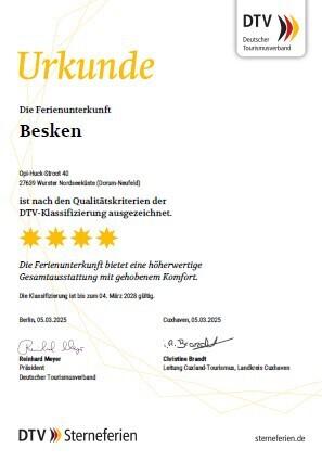 "Die Ferienunterkunft bietet eine höherwertige Gesamtausstattung mit gehobenen Komfort." - DTV