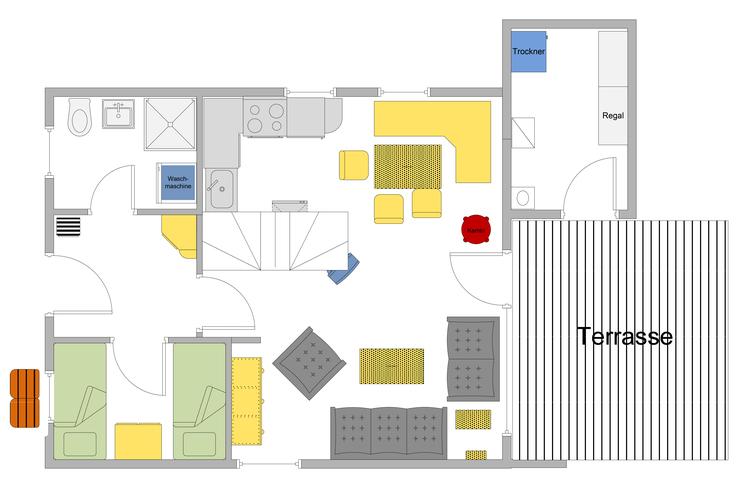 Unser 4 Sterne (DTV) Ferienhaus Typ Störtebeker bietet Platz für bis zu 6 Personen und ist voll eingerichtet. Auf ca. 85 m² Wohn- und Nutzfläche stehen Ihnen 3 Schlafräume mit je 2 Betten, 2 Badezimmer mit Dusche, eine offene Küche, ein Wohn-/Essraum mit Kamin, eine Terrasse mit Gartenmöbeln / Grill und ein Abstellraum für Fahrräder, Bollerwagen, Kinderwagen und etc. zur Verfügung.