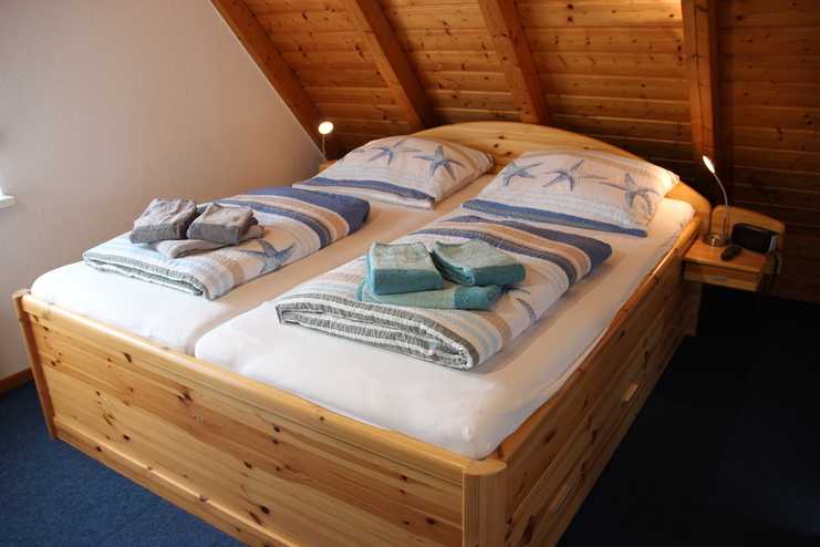 - 1 Doppelbett mit Kopfkissen und Oberbetten